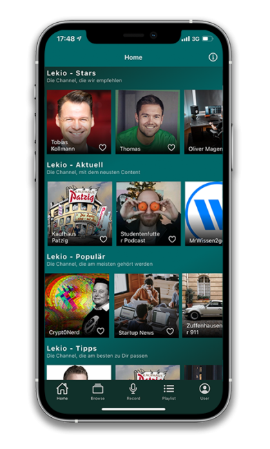 Bei LEKIO hingegen entscheidest Du selbst, was Du hören möchtest: Deine Lieblingsmusik. Deine LEKIO-Stars. Deine Lieblings-Blogger. Oder einfach nur die Audiofiles Deiner Freunde. Und vieles mehr.