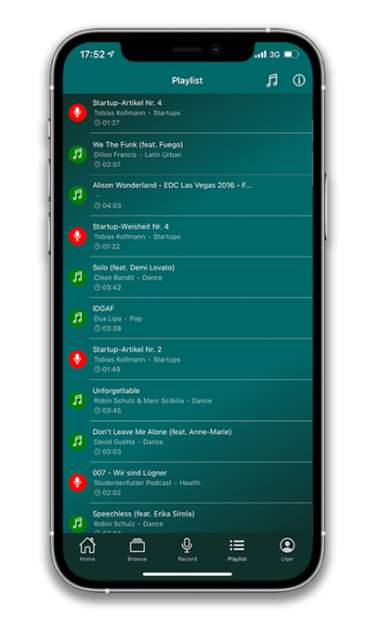 Dann noch schnell gemischt mit der Musik auf Deinem Handy und schon hast Du eine individuelle Playlist mit dem Audio-Content, den Du magst. Immer aktuell, immer spannend…
